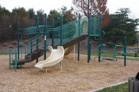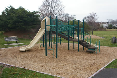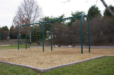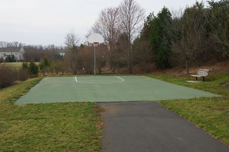 This area features swings, a Jungle Gym, and a half basketball court. There are benches but no picnic table. This is the smallest of the play areas in Polo Club Village. This play site is for Reston Association members only.